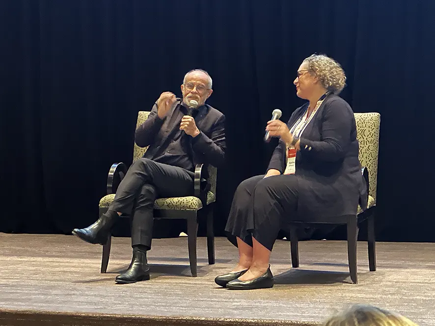 DPZ Partner Marina Khoury and Carlos Moreno (Associate Professor at the University of Paris) during the Closing Keynote: Frameworks for Restoration: The 15-Minute City and the Principles of New Urbanism