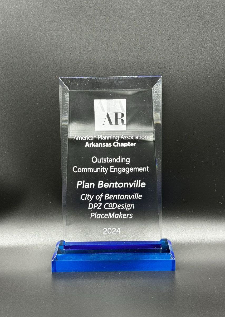 In October, the Arkansas chapter of APA awarded Plan Bentonville for “Outstanding Community Engagement”. The award recognizes a planning initiative that has demonstrated exceptional outreach and citizen participation.
