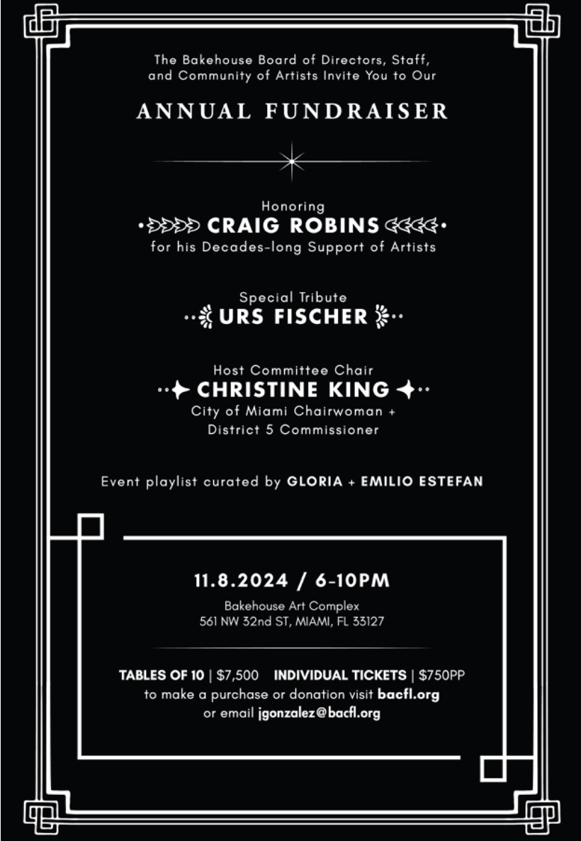This fall Lizz Plater-Zyberk served on the Honorary Committee of the Bakehouse Art Complex’s annual fundraiser.