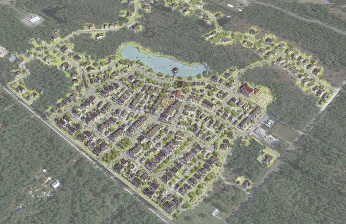 • Cane Bay Village, SC – The design process for this 900+-acre new village with a town center anchored to an existing conventional project began in 2019. It has required 2 codes for 2 different municipalities with the client negotiating with each. Following a moratorium on all development in the County that has been lifted, PUD and Plan approvals are now in process.