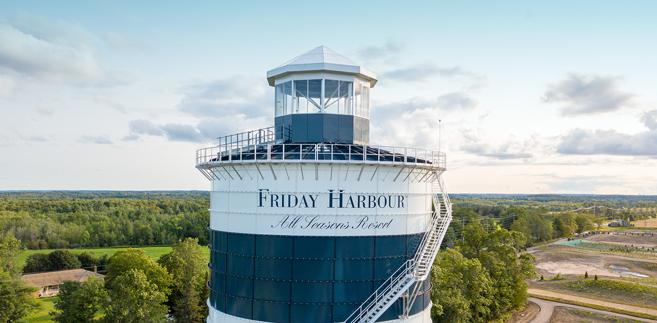 Photograph of Friday Harbour’s water tower courtesy of Friday Harbour