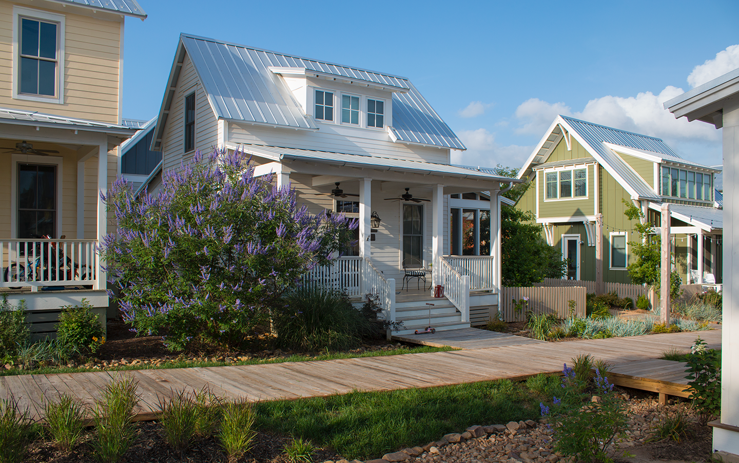 Community emphasized: many of the smaller units are arranged around shared common areas, courts, and/or along pedestrian paths.