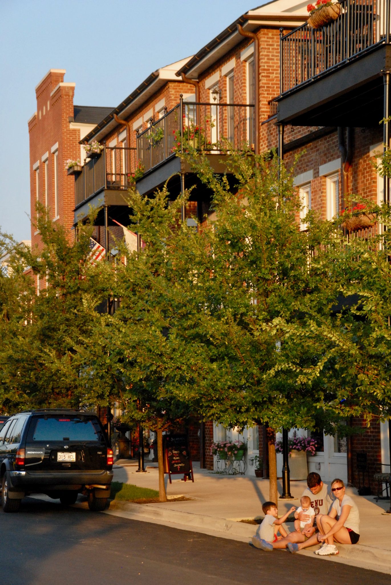 Located 20 minutes northeast of downtown Louisville, Norton Commons is an example of how placemaking is a powerful antidote to suburban sprawl. Though challenged with a less than optimal route to its commercial core, this community has flaunted conventional retail location wisdom to become an authentic destination with no problem luring shoppers, diners and other weekend entertainment seekers. Key to the success of the 60 locally-owned businesses is how the shopfronts are embedded organically into the mixed-use fabric of the town. It has also helped that right next door were an older residential subdivision on one side and a golf course development on the other in need of a center.