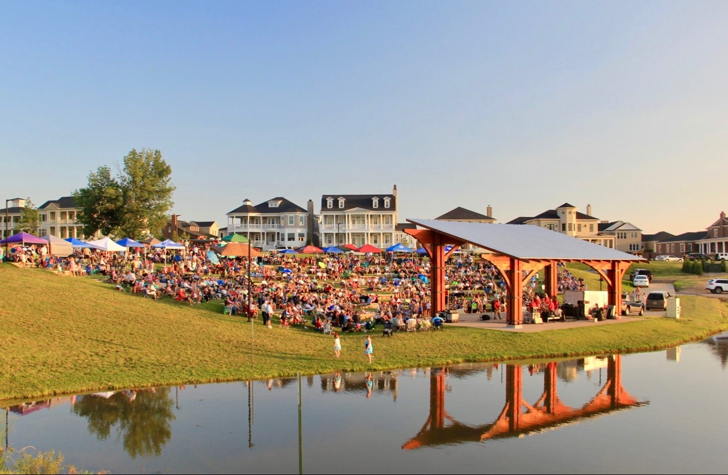 Civic amenities: town square, 2 elementary schools, community pool with clubhouse, and a community garden.