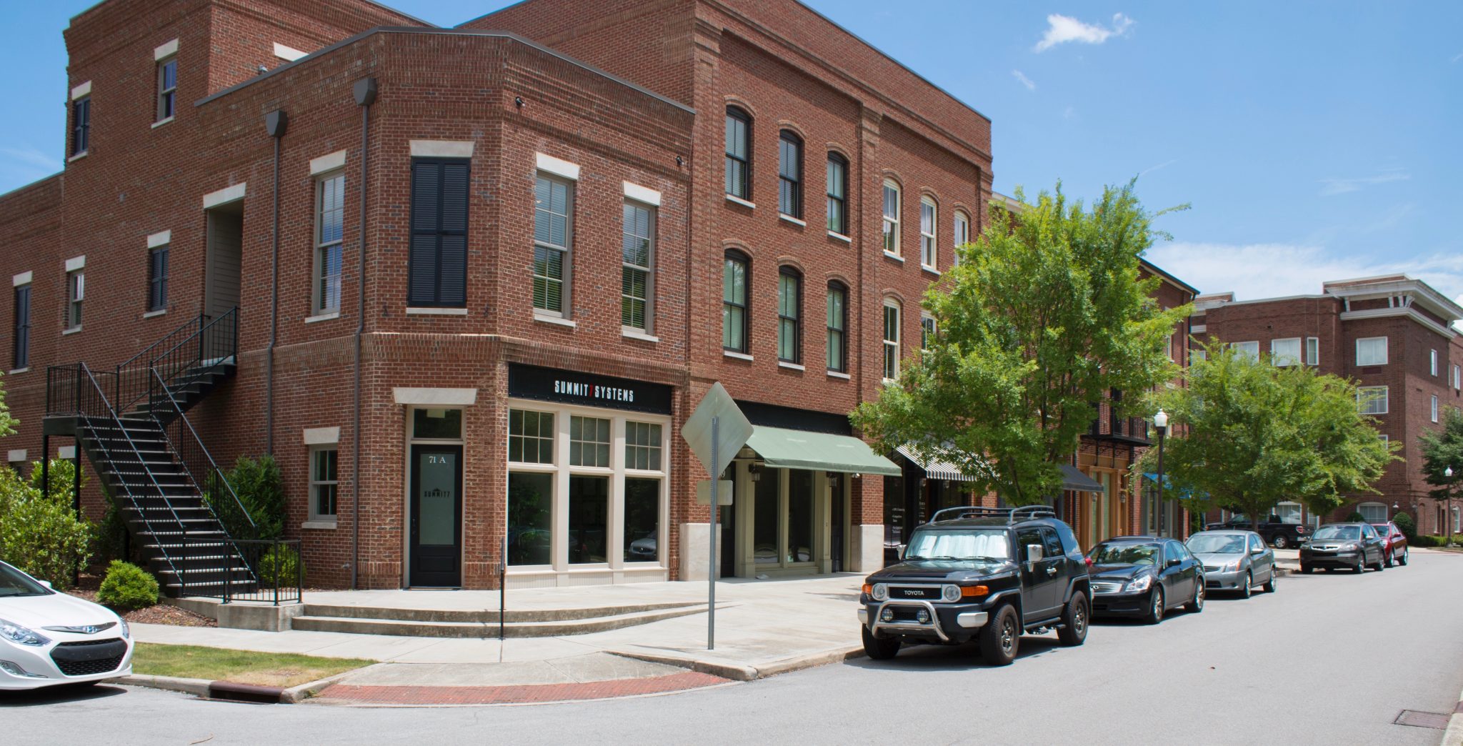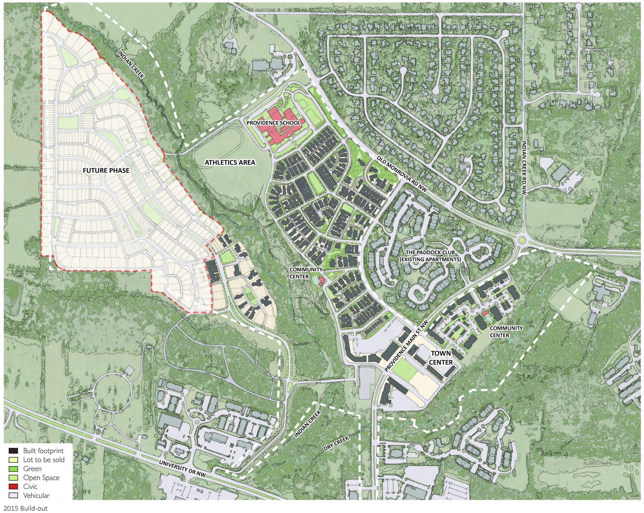 This suburban infill village in the western woodland edge of Huntsville, AL, is unique for the density, success, and location of its town center. Providence’s urban core, with a thriving restaurant and shopping scene, and four hotels, at over a quarter mile from the nearby highway arterial clearly lacks prime retail visibility. Yet it outperforms even the historic downtown of Huntsville 15 minutes away on any weekend night. The difference has been developers David and Todd Slyman’s unwavering commitment to making a special place to live, work and play.