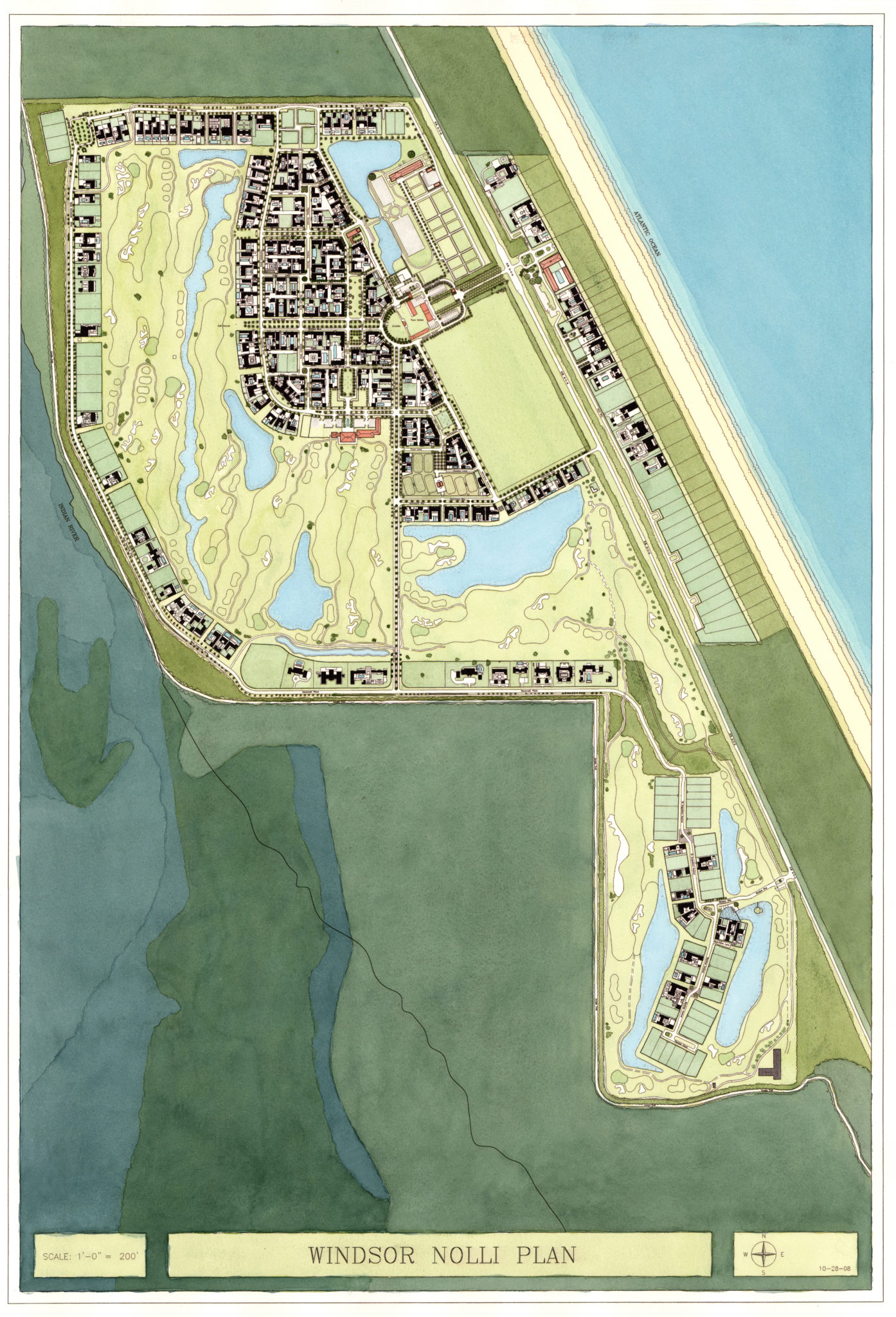 Windsor represents a radical departure from conventional residential development in the United States. Designed to function as a complete community, its center is composed of a complex of buildings that includes a general store, post office, restaurant, cafe, office space, an inn, and apartments. The center serves both as a focus for daily public life and as a gateway to the community. Among other community facilities within walking distance of the center are the meeting hall, the equestrian center, and the beach, tennis, and golf clubs.