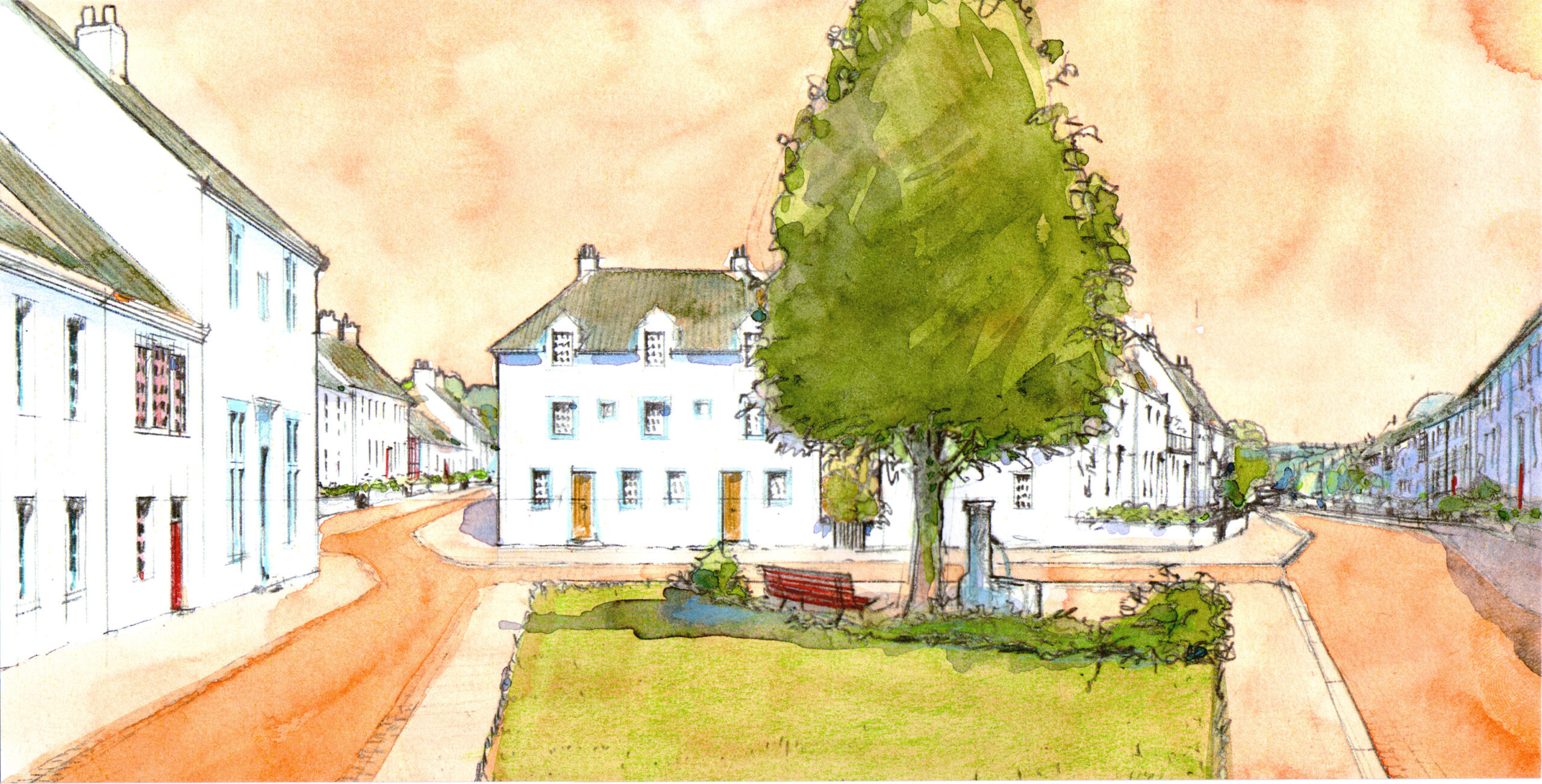 We are very pleased by the implementation of our Tornagrain project outside of Inverness, in the highlands of Scotland. As with most master-planned projects in the UK, the approval process was a thorough and multi-year one. Designed during a 2006 charrette, the community is now taking shape with great momentum. The CNU’s Public Square has just featured the project here and we are delighted to see our charrette drawings by Max Von Trott and others being so capably brought to life by the town architect Ben Pentreath. We congratulate our client Moray Estates, and Turnberrry Consulting, the planning advisors who have helped guide the project since its inception.